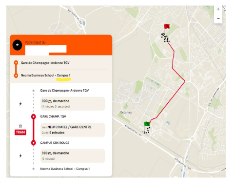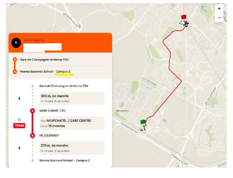 Trajet Gare champagne-ardennes TGV à NEOMA