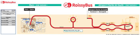RoissyBus provides a direct service between Central Paris (Opéra) and Paris-Charles de Gaulle airport. The RoissyBus stop is at 11 rue du Scribe, 75009 Paris. The journey time is approx. 1hr15 mins. Buses run between 5.15am and 12.30am to Paris-Charles de Gaulle airport and between 6am and 12.30am from the airport. They leave every 15/20 minutes. Price: 16,60€